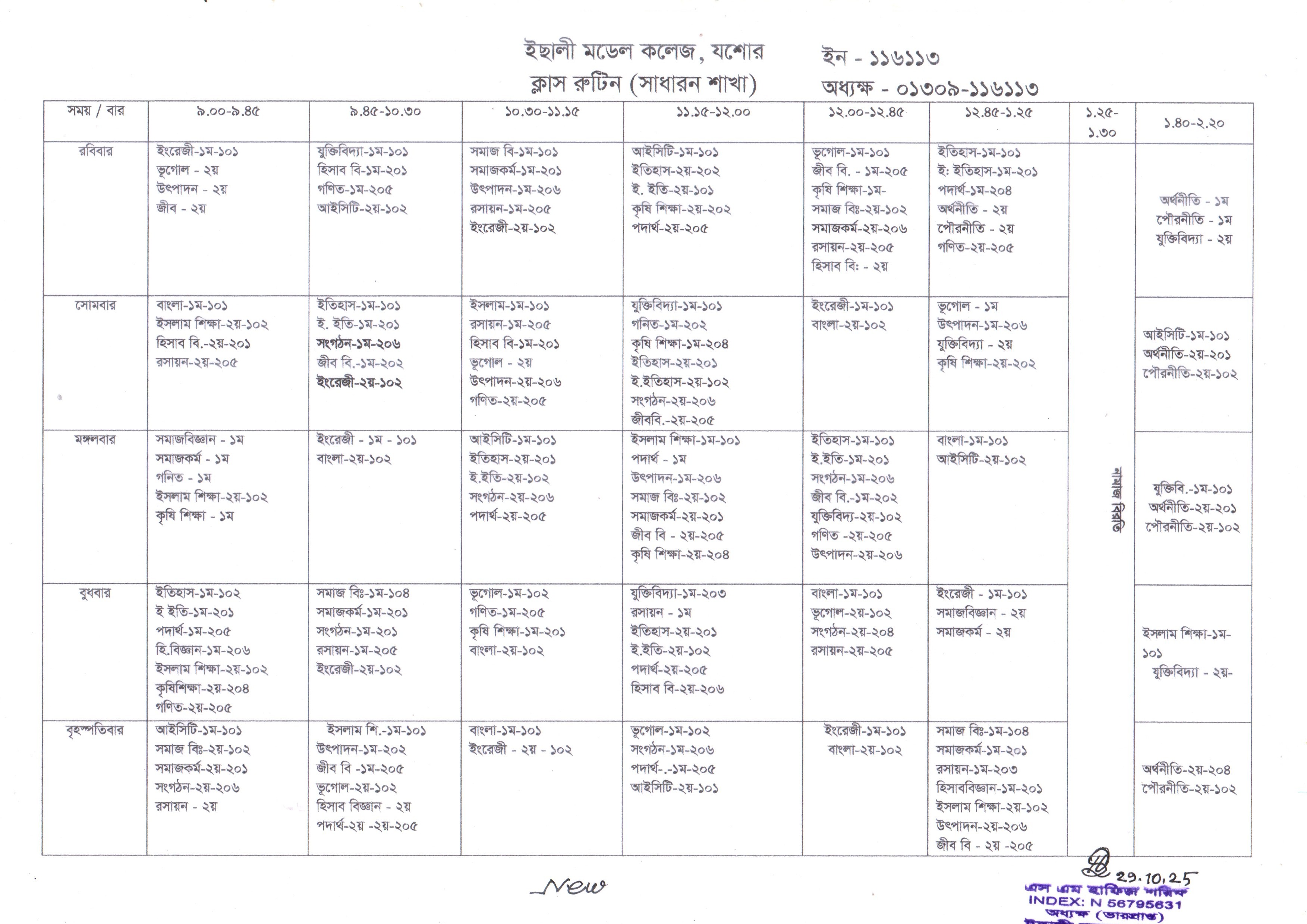 ক্লাস রুটিন